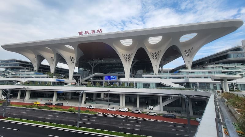 La Chongqing East Railway Station, desde su acceso principal, se asemeja más a un aeropuerto que a una terminal ferroviaria. Dispone de 15 plataformas y 29 vías, organizadas de tal manera que se minimiza la congestión, incluso durante las horas pico. En su interior, se encuentran más de 5.000 asientos, de los cuales mil están equipados con puertos USB, además de contar con restaurantes, tiendas y pantallas digitales que abarcan cada sector del complejo.