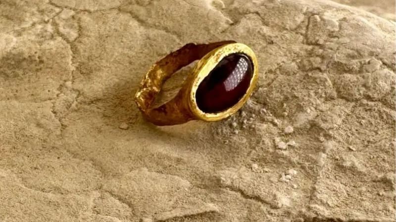 Un grupo de arqueólogos desenterró oro antiguo en la Ciudad de David, el antiguo corazón de Jerusalén. Se cree que el pequeño anillo de oro, adornado con una gema roja, data de hace aproximadamente 2300 años.