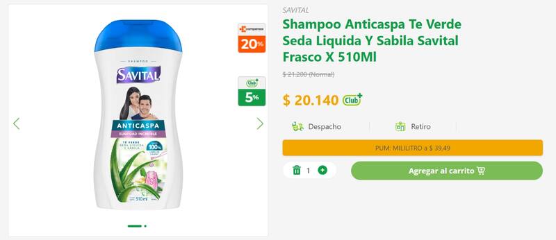 El Shampoo Savital Anticaspa Té Verde, Seda Líquida y Sábila se encuentra disponible en las principales farmacias Cruz Verde del país y también a través de su tienda virtual. El precio regular es de $21.200, pero con el descuento Club+, los clientes pueden conseguirlo por un valor aproximado de $15.900, una cifra que lo convierte en una opción altamente competitiva dentro del mercado colombiano.