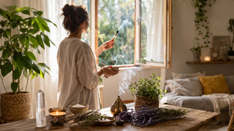 También se utilizan prácticas simples como recorrer la casa con humo de incienso o sahumerio, acompañado de una intención clara. La idea es dirigir la atención a cada espacio, especialmente rincones o zonas poco ventiladas. Este tipo de ritual busca liberar tensiones acumuladas por situaciones como discusiones, estrés o cambios recientes.