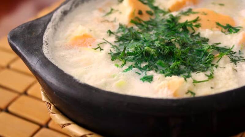 Este caldo a base de leche, agua y huevo refleja las tradiciones campesinas y se mantiene como una de las recetas más queridas por su sencillez y sabor reconfortante.