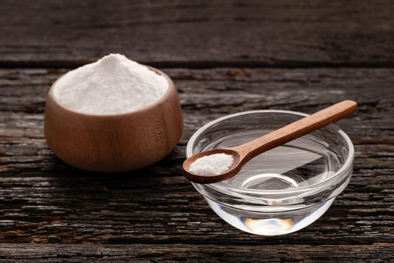 Añada media taza de bicarbonato de sodio y deje reposar por 15 minutos.