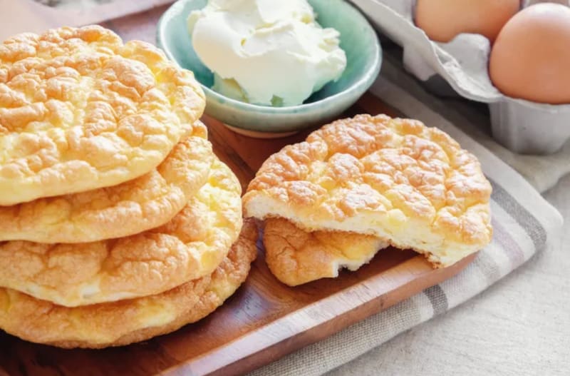 Su éxito radica en la mezcla de claras batidas y queso crema, que crean un pan aireado, liviano y versátil, ideal para desayunos, meriendas o acompañar comidas saladas.