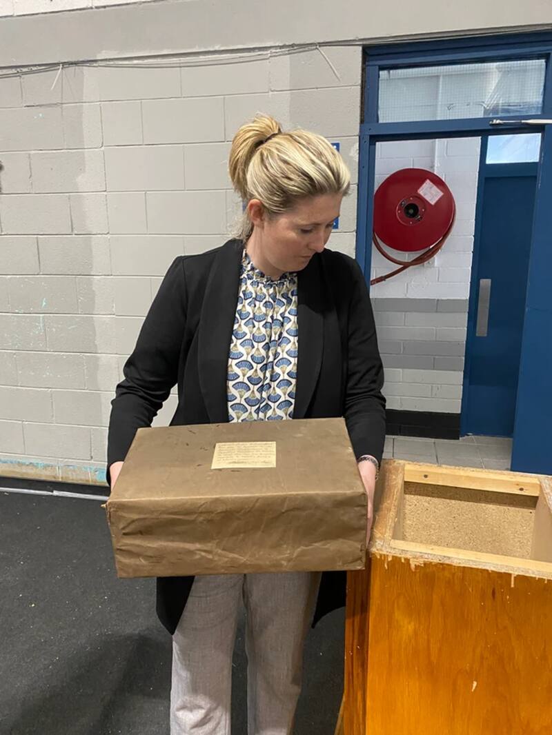 Luego de examinarlo, llevaron el paquete a la oficina de la directora Máire Quinn, envuelto en papel con una etiqueta escrita a mano en latín con la fecha de 1787 en la parte superior. Una rápida traducción sugería que el objeto contenía restos de un santo.