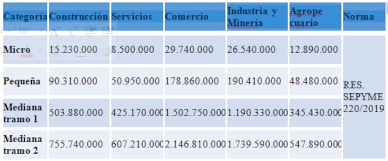 - Poder acceder a los beneficios establecidos en la ley 27.264 (ley Pymes), consistente en el pago diferido del IVA para las Micro y Pequeñas y del cómputo del 100% del impuesto sobre los débitos y créditos para los dos primeros escalones del cuadro y del 60% para las manufactureras (Tramo I).
