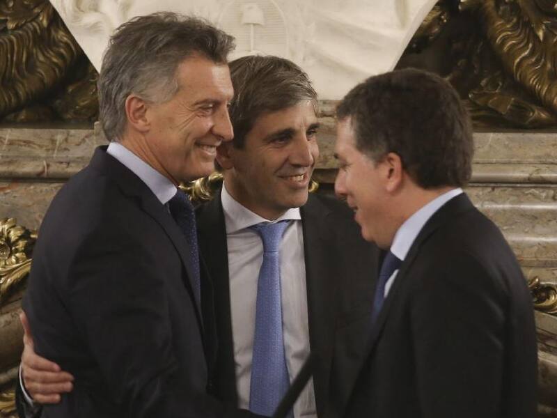 Macri con los ministros de Finanzas, Luis Caputo, y Hacienda, Nicolás Dujovne.