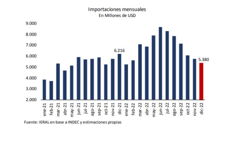 La caída importadora se habría registrado en diciembre, cuando habrían totalizado unos u$s 5380 millones, 13,4% menos que un año antes, según datos elaborados sobre la recaudación del IVA Aduanas. Si se compara con el aumento de 45% que habían alcanzado en junio de 2022, se concluye que las importaciones se redujeron 58,4 puntos en un semestre.