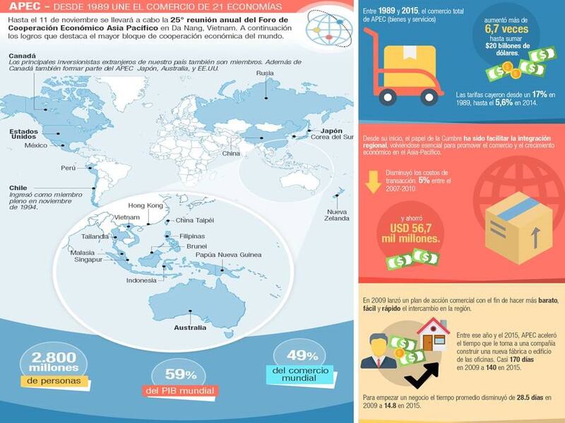 En el reciente encuentro de la APEC 2017 –noviembre 10 y 11- ¿Qué es la APEC? Es el Foro Económico de Cooperación Asia-Pacifico y fue presentado públicamente por primera vez por el ex Primer Ministro de Australia Bob Hawke durante un discurso en Seúl, Corea, el 31 de enero de 1989. Diez meses después, 12 economías de Asia-Pacífico se reunieron en Canberra, Australia para establecer APEC. Los miembros fundadores fueron Australia, Brunei Darussalam, Canadá, Indonesia, Japón, Corea, Malasia, Nueva Zelanda, Filipinas, Singapur, Tailandia y los Estados Unidos. En 1991 se sumaron China, Hong Kong, China y el Taipei Chino. Par el año 1993 se unieron México y Papua Nueva Guinea.