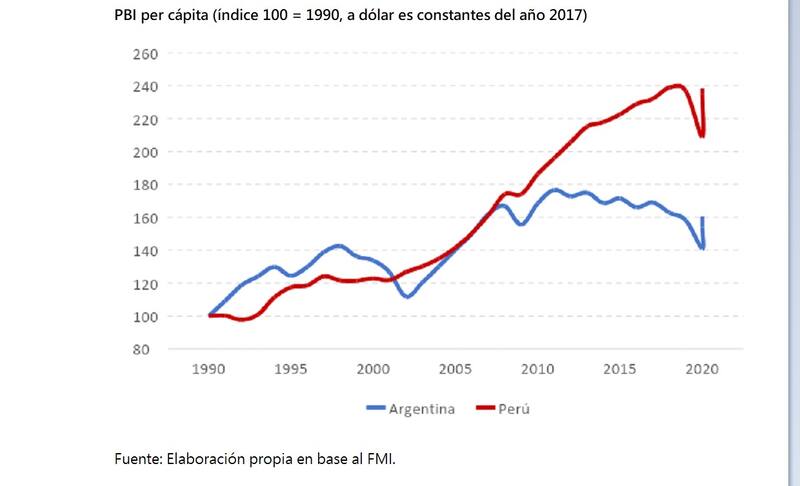 Los resultados en términos de desempeño económico son evidentes. Mientras que la economía argentina creció a una tasa promedio del 2,8% durante ese período, la del Perú fue ampliamente superior, siendo del 4,3%.