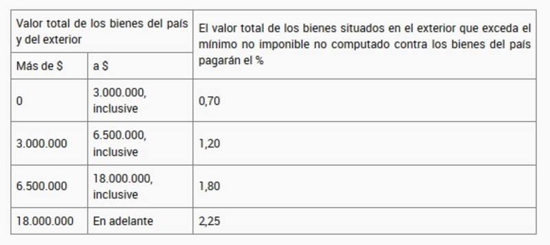 Por los bienes que se poseen en el exterior habrá que pagar una alícuota diferencial que llega hasta la tasa del 2,25%. Si se trae al país por lo menos un 5% de los bienes del exterior se paga por todos los activos, incluidos los externos, las tasas reducidas.