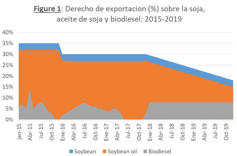 Como muestra el siguiente grafico, con posterioridad a 2015 la política de derechos escalonados continuo en favor del biodiésel.