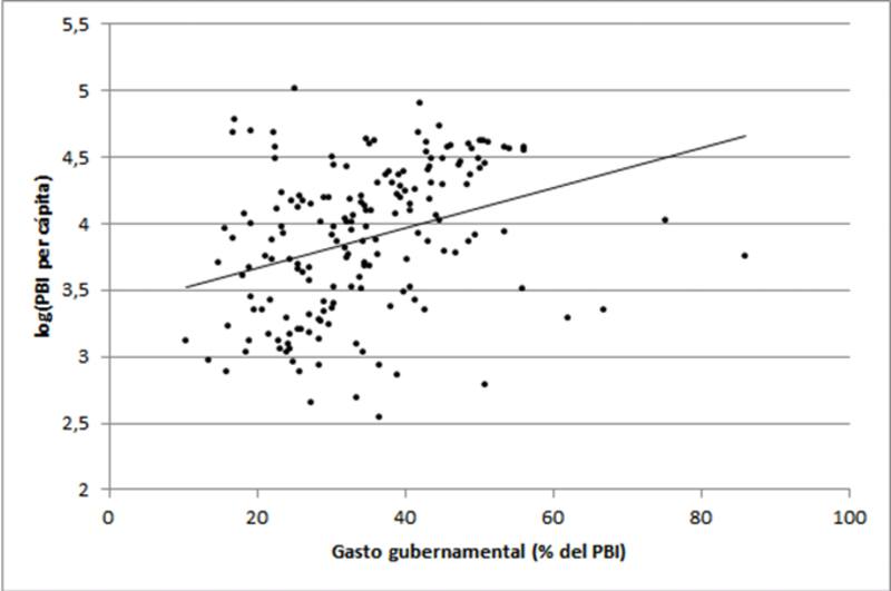 Alternativamente, y tomando en consideración que los argumentos del Instituto Fraser son correctos, esto significa que un mayor gasto gubernamental está positivamente correlacionado con, por ejemplo, un mayor PBI per cápita.