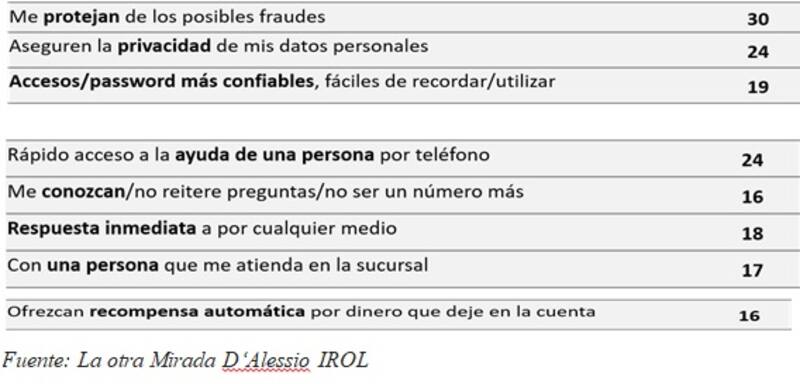 a) Uno complejo por sus implicancias: Contar con la posibilidad del pago mínimo sin recargar intereses (69%) y dos más fáciles de implementar: