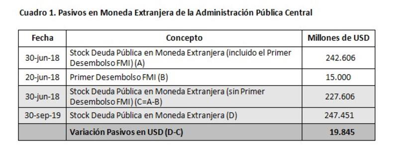 Si los recursos del FMI hubiesen sido requeridos por el Gobierno sólo para cambiar la composición de los acreedores, el Stock de Deuda Pública al 30 de septiembre de 2019 no debería haberse modificado