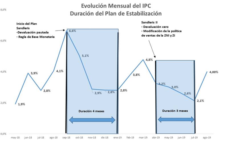 En general, los planes de estabilización transitorios atrasan la tasa de inflación durante un período de tiempo, cuya duración depende de las características de cada plan, de la credibilidad y consistencia de cada intento, y culminan, con una aceleración inflacionaria muy vertiginosa.