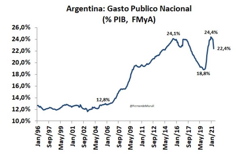 El gasto público retrocedió en lo que va del año dos puntos del PBI, lo que junto a los ingresos fiscales provenientes de las retenciones a la exportación de commodities, en pleno boom de precios internacionales, los provenientes del impuesto a la riqueza y los que genera la propia inflación permitió mantener al déficit primario muy por debajo de la meta presupuestada para 2021.
