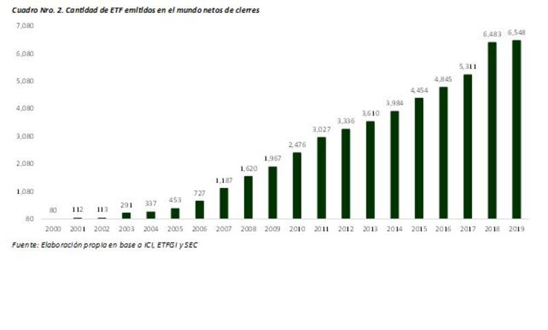 A comienzos del año 2000 fueron emitidos 80 productos “ETP , cuyo estilo de inversión era pasivo mientras que 19 años después existen más de 6.000 productos para elegir en qué invertir. En tal sentido, el año 2011 dio comienzo a una tendencia creciente en la apertura y cierre de fondos ETF.