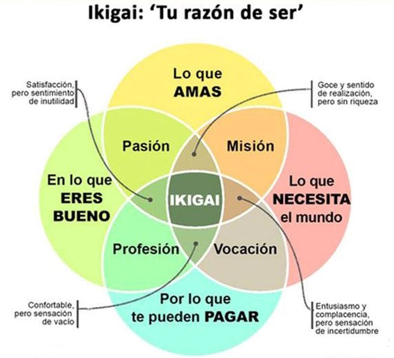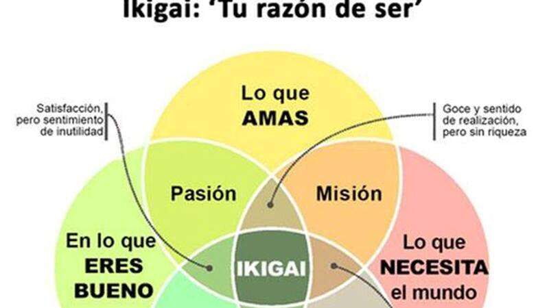 Solo si te desempeñas en algo que reúna los 4 lograrás en la intersección hallar el "ikigai".