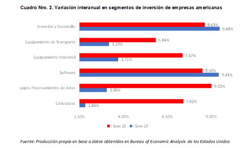 Así entonces, nuevas incógnitas aparecen en los análisis de los inversores y hacedores de políticas. Durante el primer semestre, las empresas estadounidenses invirtieron mayor cantidad de dinero en software que en otros tipos de bienes de capital. En valores nominales, la inversión interanual en software aumentó un 9.4% mientras que la compra de equipamiento en maquinarias se incrementó un 4% y en transporte un 3.2%. En términos monetarios, las empresas americanas en un trimestre invirtieron casi u$s 500 billones, el equivalente al Producto Bruto Interno (PBI) de Argentina.
