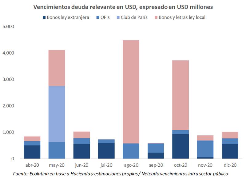 Por el contrario, los vencimientos con acreedores privados parecen prácticamente imposibles de relajarse en el corto plazo: de mínima, es necesario acordar con dos tercios de los tenedores para lograrlo, algo que ya parecía muy complicado en febrero y prácticamente imposible en medio de esta crisis.
