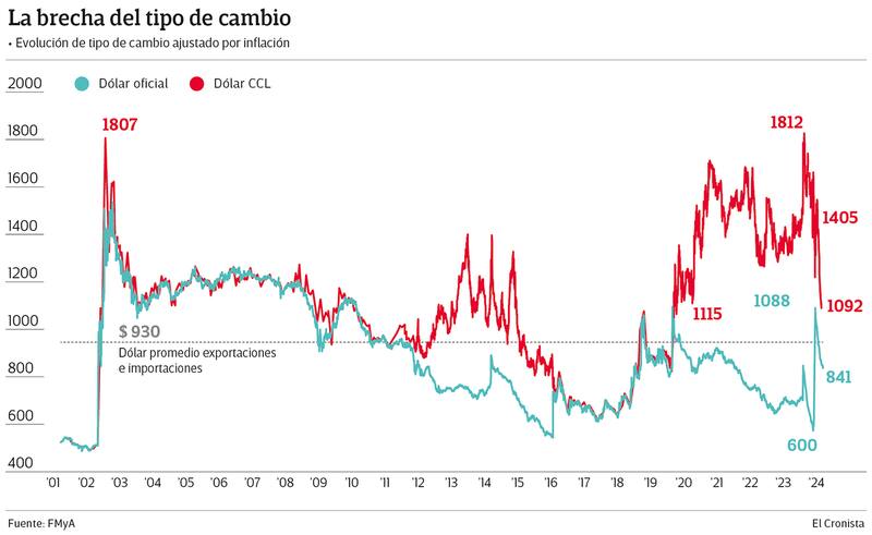 Para defender esa posición, en el edificio de la calle Reconquista -que por ahora no pareciera tener destino de cierre o incendio- usan un gráfico del economista Fernando Marull con la serie larga del tipo de cambio de equilibrio de los últimos 25 años. El promedio de todo ese lapso arroja $930 a valores actuales.