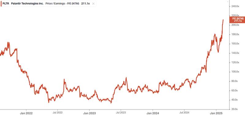 Sin embargo, el valor de una acción no solo depende del potencial de la compañía, sino también de su precio actual en relación con sus fundamentos. En este caso, la valuación de Palantir parece extremadamente elevada. Esto sugiere que una parte importante del precio refleja altas expectativas futuras, más que resultados concretos, lo que implica un gran riesgo si el mercado ajusta su percepción o si el negocio no crece al ritmo esperado.
