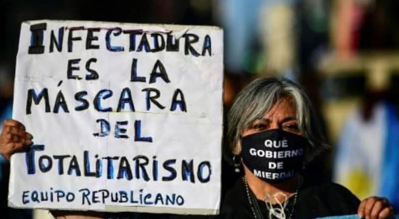 Así surgió el término "infectadura", como una expresión extrema de aquellos que rechazaron las medidas impartidas por el Gobierno para contener la propagación de coronavirus. Muchos a quienes, desde la vereda de enfrente, se los catalogó como covidiotas, palabra adaptada de la lengua inglesa y ayer aceptada por la RAE.