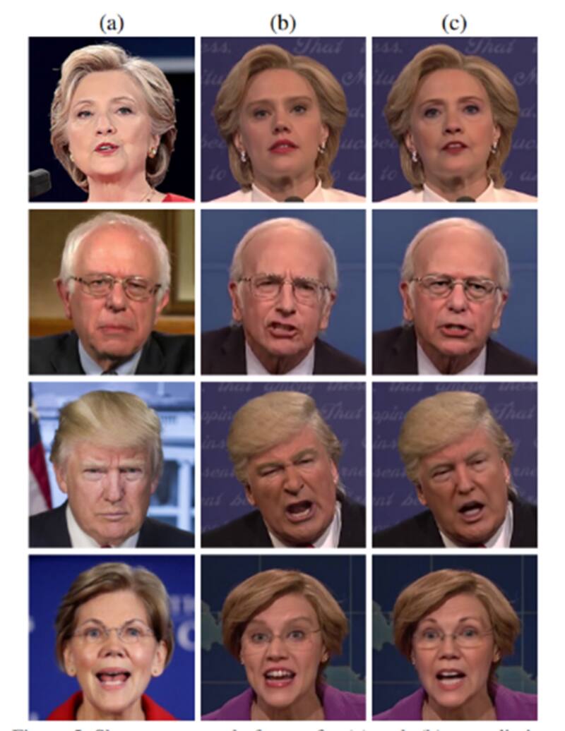 El cambio de caras no es lo más grave, sino su discurso. Tecnológicamente es posible elegir un discurso con un contenido tendencioso y falso, y hacerlo coincidir con los movimientos del rostro, convirtiendo a alguien creíble en un portador de interés manipulador de otros, con la posibilidad de destruir la reputación del involucrado en la imagen o video.