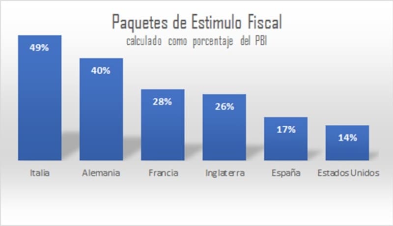 Por el contrario a lo que sucedió con estos diez casos, otras economías que se mostraron más abiertas en relación a la pandemia, tuvieron resultados menos violentos. Tenemos el caso de Estados Unidos, que inyectó un paquete de estímulo de un 14% de su PBI -inferior a Italia (49%) o Francia (28%)- y el impacto que sufrió sobre su producto fue bastante menor: -4,27%.