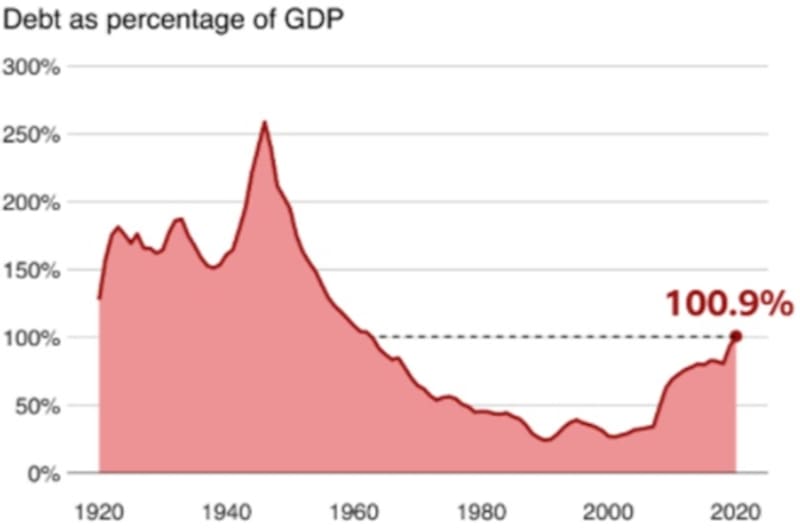 Para darse una idea de lo grave del asunto basta ver las cuentas públicas: el déficit sumó un +30% en relación al año anterior a la pandemia y la deuda superó el 100% del producto por primera vez desde 1963.