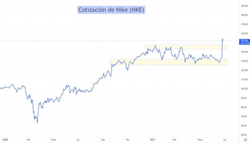 La semana pasada Nike presentó su informe de ganancias trimestrales y sus acciones salieron volando. Subieron más del 15% en un díay marcaron un nuevo máximo histórico. Semejante explosión para un activo poco volátil es complicado de entender. En esta nota te cuento todos los detalles.