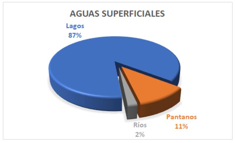 De ese 2,5%, el 69,7% (24 millones de km3) está en forma de glaciares y hielo en la Antártida y el Ártico, el 30% está en acuíferos subterráneos y sólo el 0,3% está en lo que se denominan aguas superficiales: