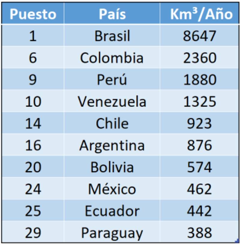 Es notable encontrar a cuatro países de Sudamérica en esta lista. Y si tenemos en cuenta a todos los países de América Latina, veremos que la nuestra es una región bendecida con una gran disponibilidad de agua, ya que hay 10 países en los primeros 30 puestos: