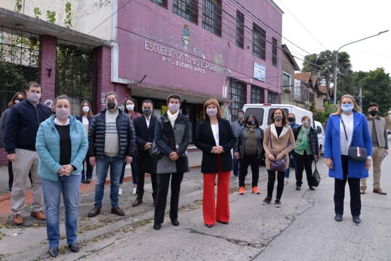 El martes pasado, la presidente del PRO Patricia Bullrich estuvo hablando con unos vecinos cuyos hijos asisten al colegio Thomas Espora de Castelar en la que también estuvieron concejales y referentes locales de su espacio.