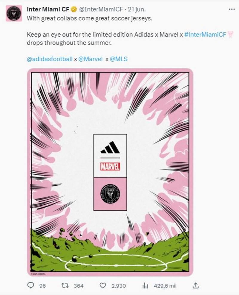 "Estén atentos a la edición limitada Adidas x Marvel x #InterMiamiCF durante todo el verano", reza el posteo publicado por el nuevo club del capitán de la selección argentina, Lionel Messi, reciente incorporación del equipo propiedad de David Beckham y de los hermanos Mas.