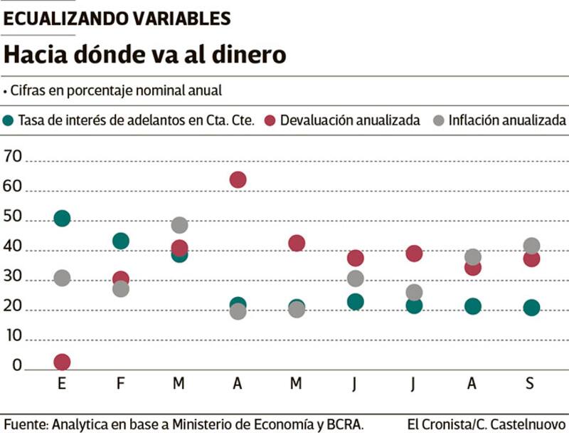 Las tasas activas -sostienen- se ubican todavía debajo (los adelantos apenas superan el 20%) y de la devaluación anualizada (34%).