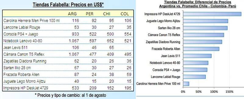 Los precios de Falabella en Argentina y países vecinos
