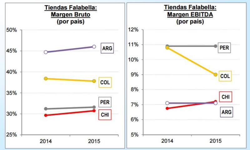 Margen bruto y Ebitda de Falabella en cada país