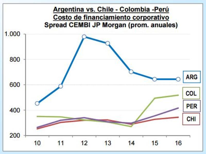 La Argentina tiene también mayores costos de financiamiento