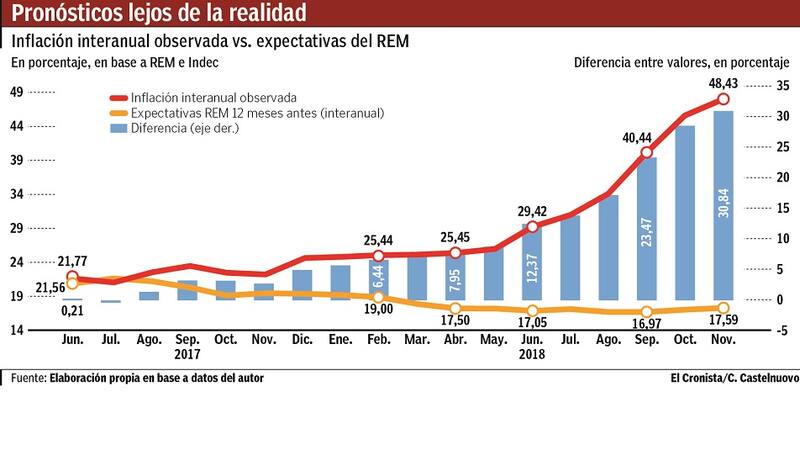 Adicionalmente, el promedio de los economistas adopta un comportamiento de manada tendiente a evitar salirse de la "mediana", lo cual potencia el error. Todo este comportamiento tiene costos para la sociedad. ¿Por qué? Porque los policy makers toman decisiones de política económica basadas en estas predicciones erróneas, lo cual conduce inexorablemente a pésimos resultados (mucha más devaluación, mayor inflación y peor nivel de actividad). Este rulo negativo entre economistas, políticos, medidas de política y resultados económicos marcó a fuego 2017/2018. Los economistas subestimaban la inflación y el dólar, el BCRA tomaba decisiones basadas en dichas estimaciones y consecuentemente relajaba la política monetaria; cuando en realidad había que endurecerla. Resultado: las variables "volaron por el aire" y la sociedad pagó los costos.