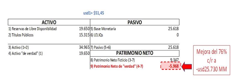 Justamente, el problema del BCRA es que su balance (bien medido) y consecuentemente hay que esperar más devaluación e inflación a futuro. Bien medido y a un tipo de cambio mayorista de $51,45, el patrimonio neto del BCRA relevante a la hora de hacer política monetaria es -usd25.730 MM). Con este balance quebrado no hay chances de estabilizar el tipo de cambio, desacelerar la inflación y bajar la tasa de interés.