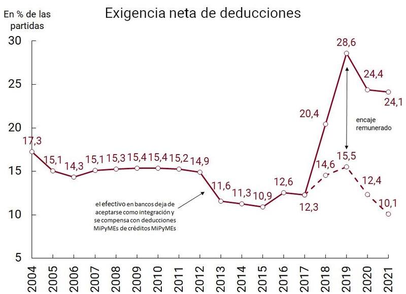 Que los encajes sean altos es prudencialmente bueno, pero si son muy altos, como en el caso de los plazos fijos que llegan al 32%, se complica generar una adecuada remuneración a los depositantes. Por ese motivo, en esa época los bancos recibían una tasa de Leliq exorbitante para que, con la parte no encajada, pudieran atraer depósitos. Pero, lógicamente, tasas de Leliq tan altas hacían inviable que los fondos se prestaran al público y a las empresas.