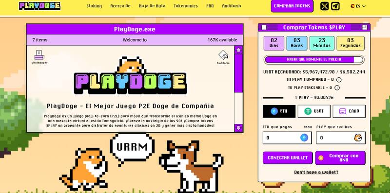 PlayDoge es una criptomoneda meme P2E que se está volviendo viral gracias a su innovador enfoque inspirado en el juego Tamagotchi de los años 90. Los titulares pueden obtener recompensas en forma de tokens $PLAY,cuidando correctamente a su mascota Doge virtual, y participando en los minijuegos que la plataforma pone a disposición de los usuarios.