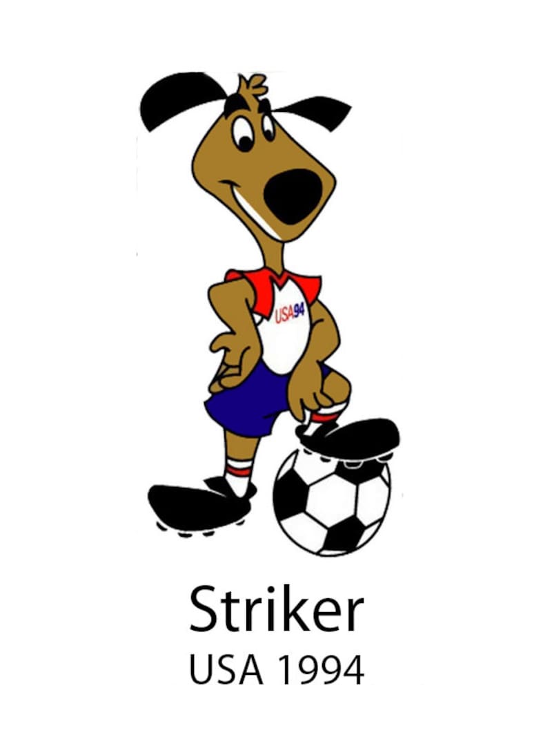 El Mundial de los Estados Unidos 1994 contó con “Striker como mascota oficial. Era un simpático perro diseñado por los estudios de Animación de Warner Bros, vestido con los colores de la bandera norteamericana y estaba acompañado de su infaltable balón de soccer.