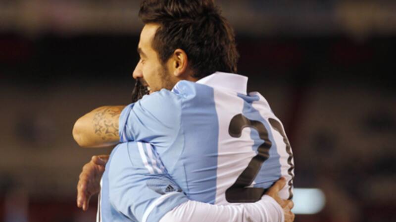 Goles en el primer tiempo; 5m. Lavezzi (Argentina) y 43m. Messi (Argentina).