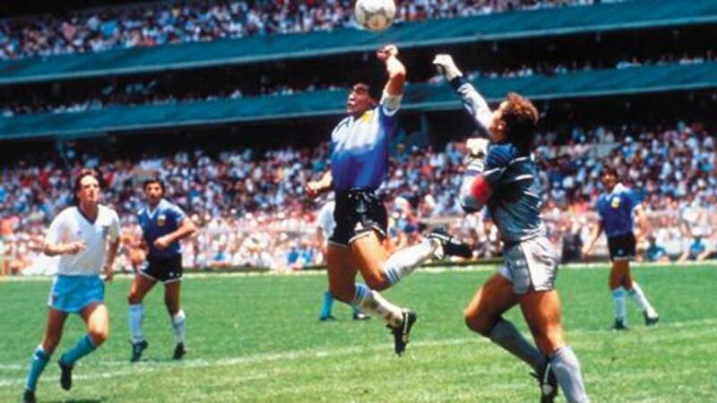 En el primer tanto anotado ese día, Maradona le ganó en el salto al arquero Peter Shilton -pese a contar con menos estatura- y envió la pelota al fondo de la red, luego de empujarla con su mano. El propio Diego definió aquel gol como “La Mano de Dios .