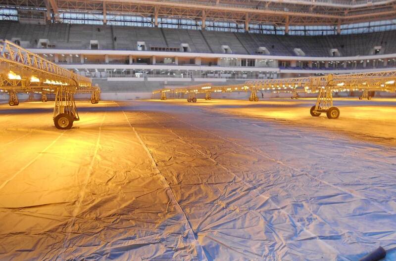 La lona contribuye a que el césped retenga el calor aportado por la energía lumínica y permite el desplazamiento de las estructuras, que cuentan con dos pares de ruedas cada una, según se puede observar en las imágenes publicadas por el portal especializado en estadios de fútbol StadiumDB.