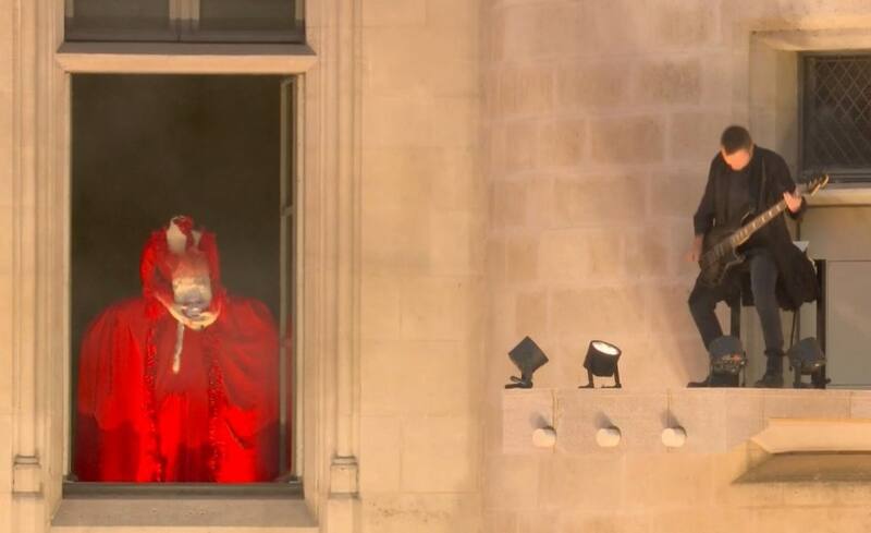 Previamente, se había representado el histórico cuadro de "La libertad guiando al pueblo", pintado por Eugene Delacroix en 1830 y conservado en el Museo del Louvre de la capital parisina. Al mismo tiempo, sonaba la banda de punk Gojira.
