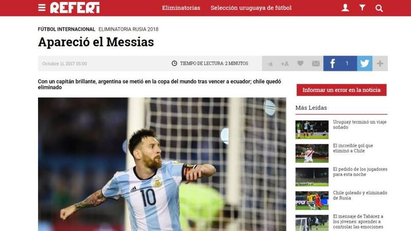 "Apareció el Messias", resumió El Observador de Uruguay, en sus sitio deportivo Referí.