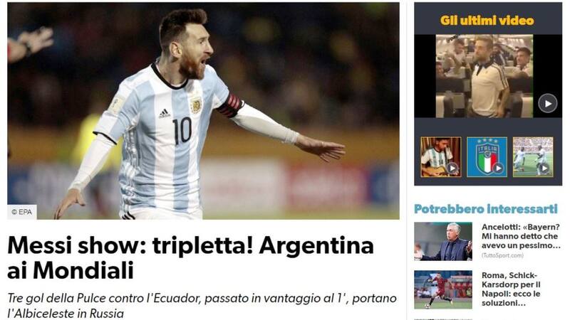 "Messi show: triplete! Argentina al Mundial", tituló el italiano Corriere dello Sport, que también elogió la actuación del jugador argentino.